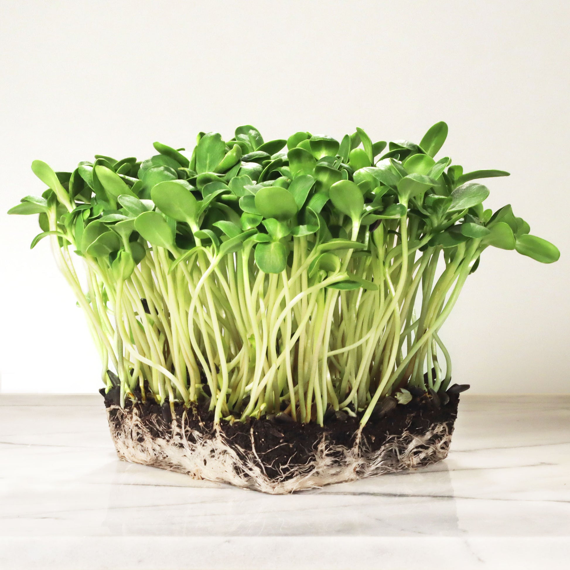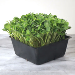 Sunflower is one the most popular and well known of the Microgreens, and larger in size. They can be added to any salad mix, burgers, or solo as a snack. Kids will love them! They offer a pleasant nutty, slightly sweet flavor.